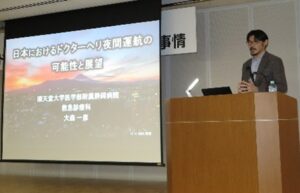 ③ 両氏の招聘にご尽力いただいた大森一彦医師(順天堂大学静岡病院救命救急センター長)から「現地でのヘリ搭乗経験を踏まえた日本における夜間運航の可能性について」